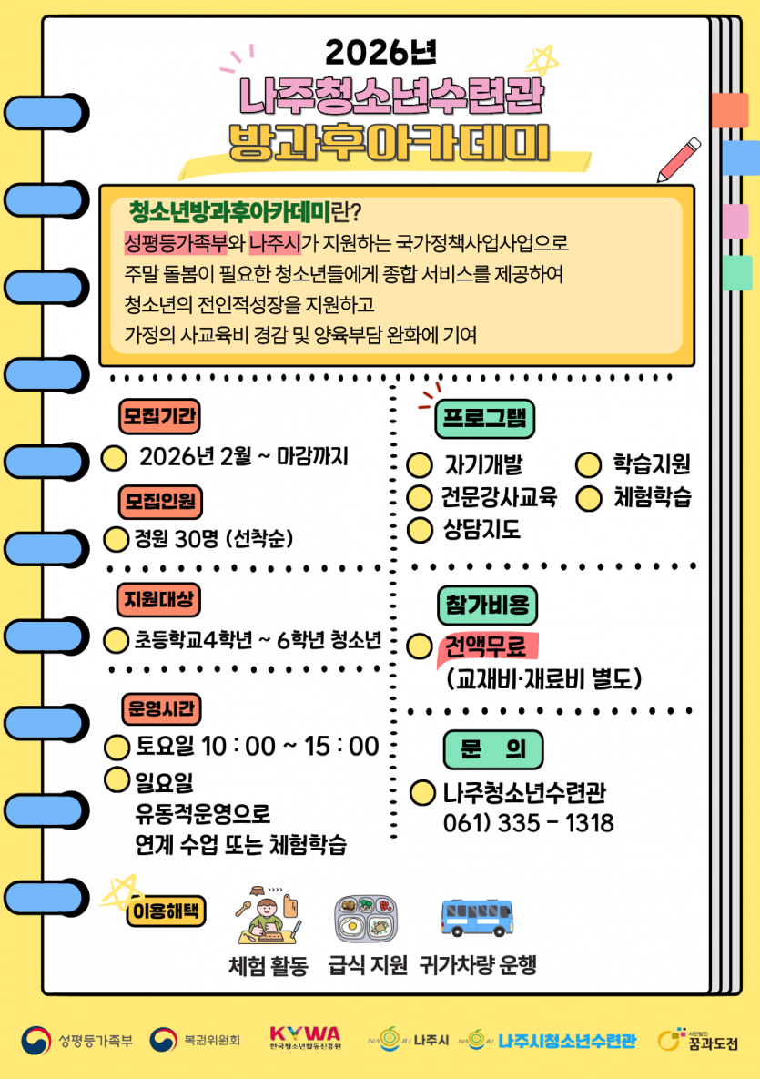 [2026년 나주시청소년수련관 청소년방과후아카데미 입학생 모집]